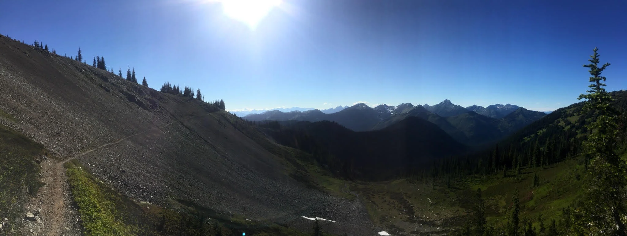 A mile under my belt, I found myself navigating a thin trail along a scree-covered mountain face, with the Northern Cascades bathed in morning sunlight across the valleys from me. Also, the breakfast of carb paste kicked in. Both of these were huge morale boosters and the tin man received a squirt of oil.