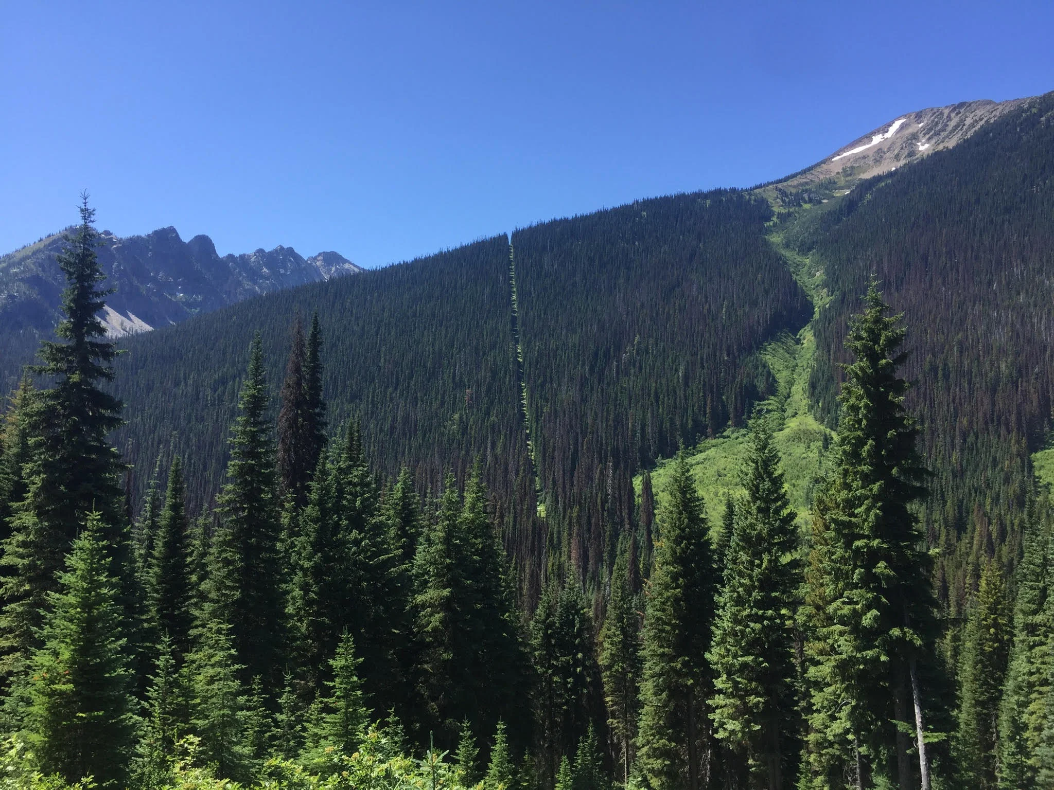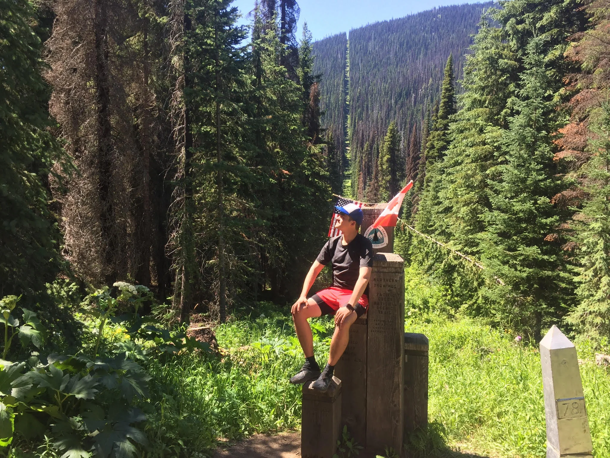 Within a few hours, I was hiking down Holman Pass, the biggest elevation change on this segment, and my body finally felt rejuvenated. I was cruising, eating a granola bar, exclaiming out loud to myself about views, and was ready to push through to the border. Even though I was apprehensive about the nine miles of downhill that I was hiking since I'd have to retrace my steps later in the day, I managed to ride that wave of energy down the pass, through four miles of heavy underbrush and, around 1 PM, I arrived at the end of the trail. Jackpot.