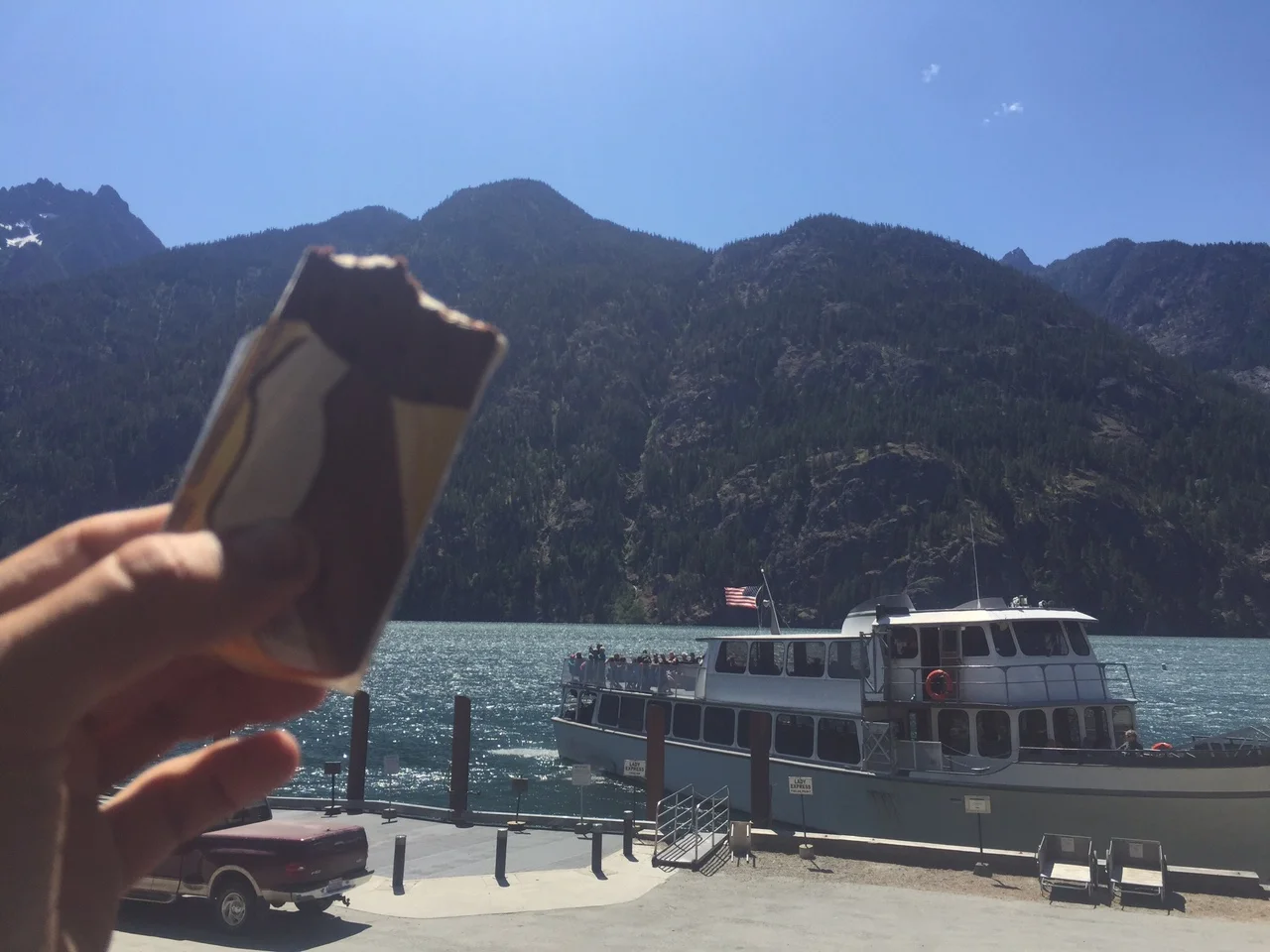 Stehekin was surreal. This was the first time that, as a thru-hiker, I was in the minority. I felt really dirty and smelly. I hadn't looked in a mirror in five days so didn't know if I had food or boogers on my face. Hayden was blissfully unaware of the granola bar crumbs covering the lower part of his face - making me more nervous about my own appearance. The Stehekin shop door had a sign saying "no backpacks."