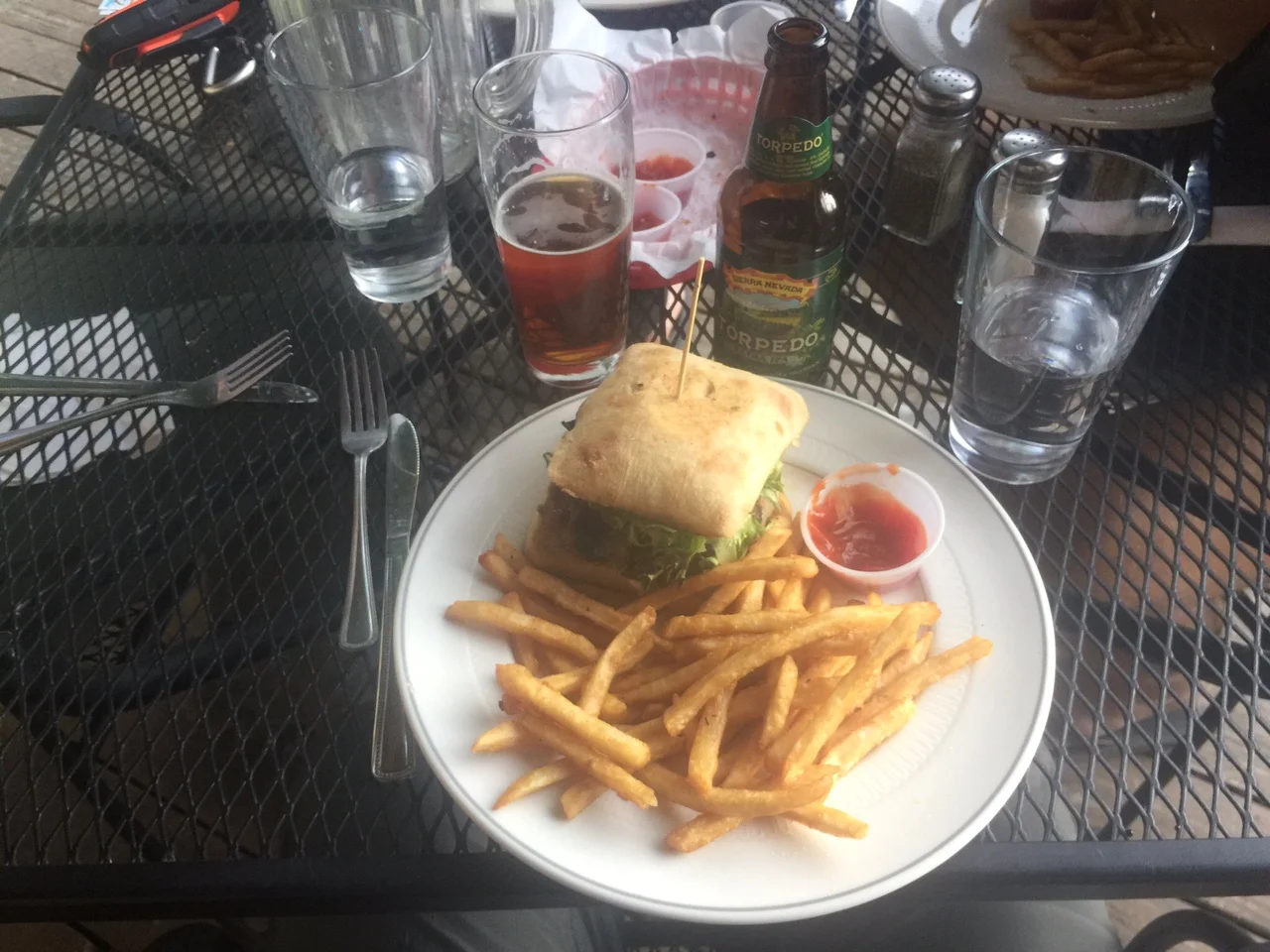 Ate dinner at the Stehekin restaurant: burger, beer battered fries, blue cheese side salad, and Sierra Nevada beer (shout out to NoCal). Warm food tasted so good. My stove-using dinner-mates all wolfed their meals down within fifteen minutes. It took me an hour to finish mine.