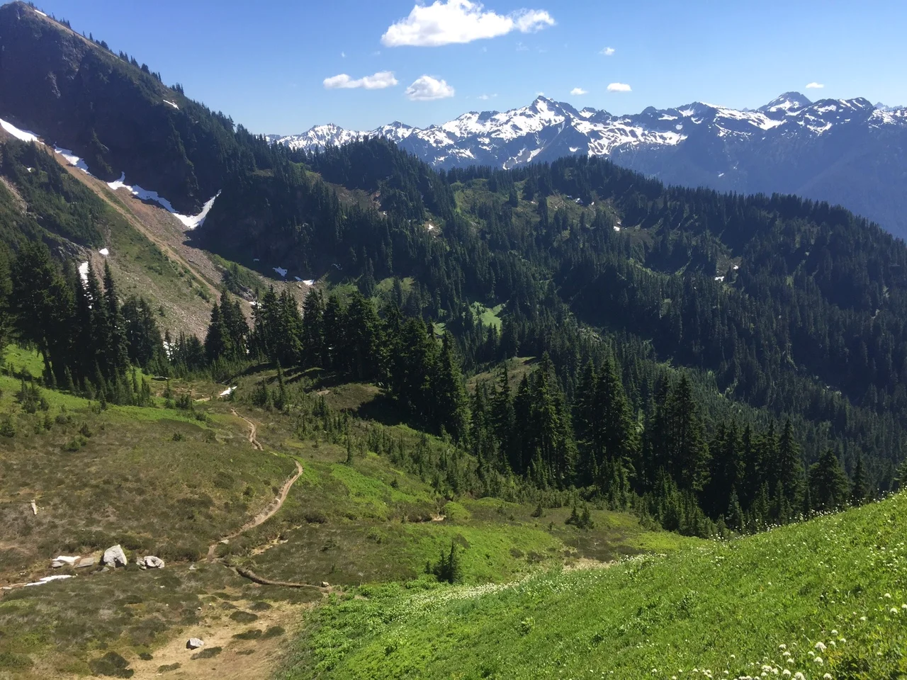 To sum it up, today was brutal. Not only is there lingering snow on the trail, but much of it has not been maintained yet this season. Downed trees over the trail are commonplace. The thick, spiny underbrush has overgrown many parts. Speaking with a ranger two days ago, he said that much of this year's trail maintenance will take place in the next month, to prepare for the surge of northbound hikers who will hit the state in September.